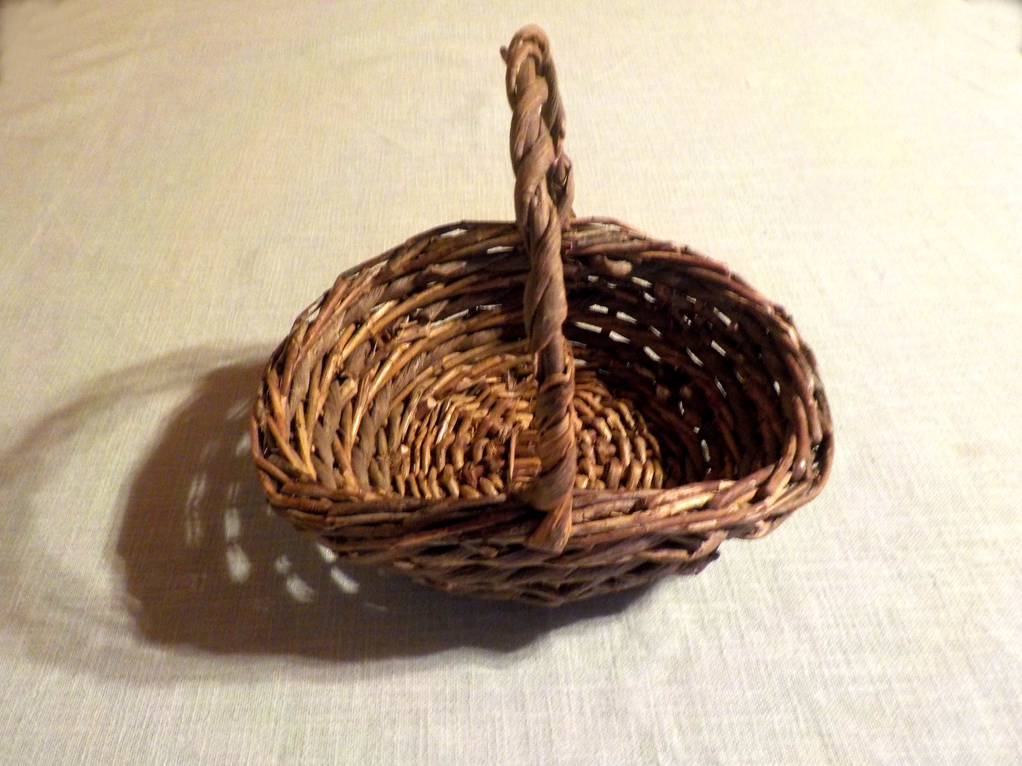 Le petit panier que l'on trouve ci-dessus nous a interpelé. On l'a trouvé certes modeste, rustique aussi, mais néanmoins tout à fait admirable dans sa forme et sa réalisation. Une sorte de chef-d'oeuvre sorti de mains robustes, vu le diamètre des branches utilisées pour sa confection. Car il ne s'agit pas ici d'osier, mais de bois. Sans doute mis à tremper longtemps pour qu'on puisse le plier avec aisance. Le résultat obtenu est sans conteste admirable. Un panier qui fait tilt. Qui vous retient. Qui mériterait de figurer dans une collection de ce type d'objets. Dans un musée. Ni plus ni moins.