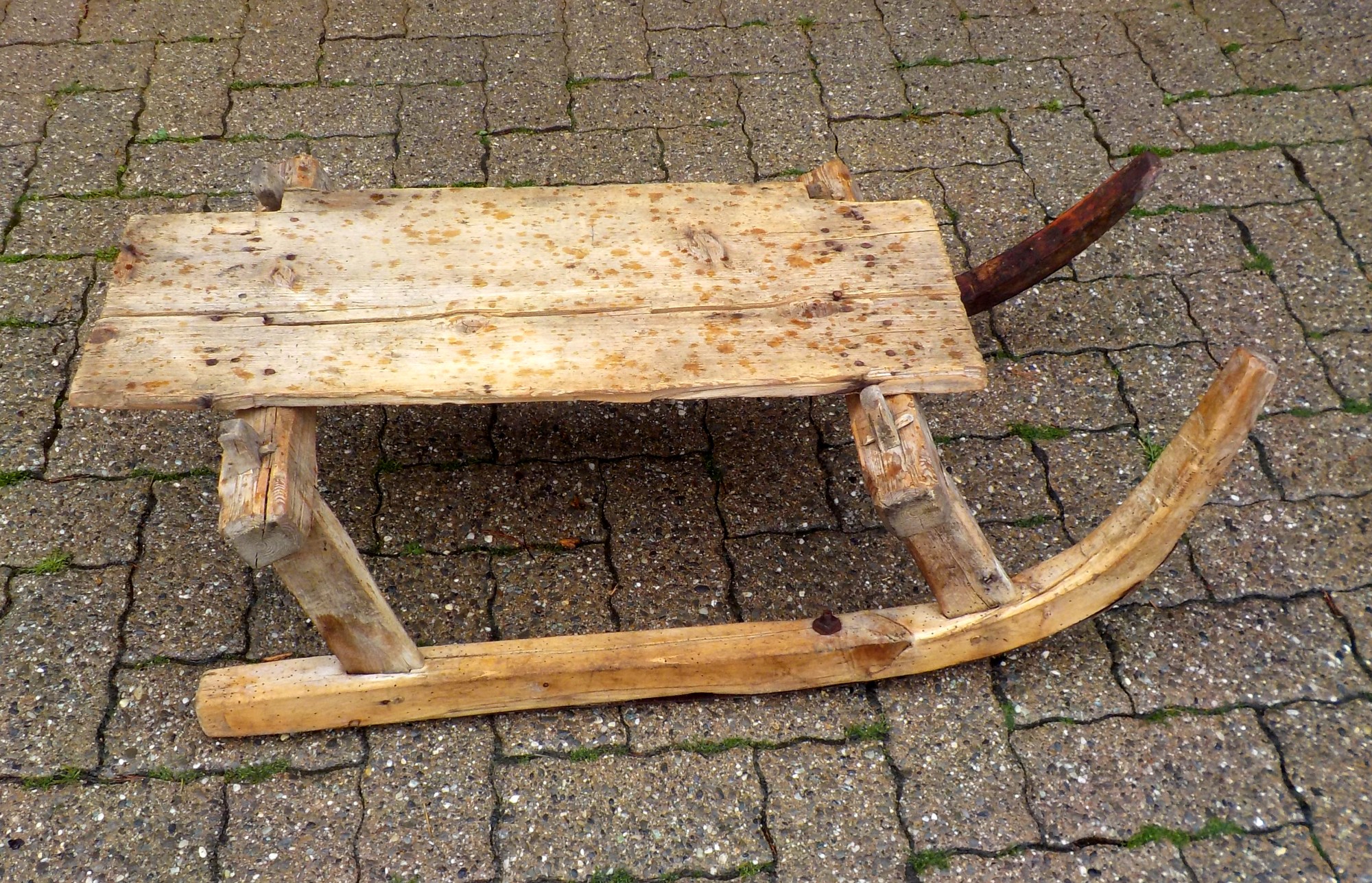 Il y avait les grands traîneaux que tiraient les chevaux. Il y avait aussi ces luges à bras que ne servait que l'homme. Ces engins avaient en général de grands lugeons que l'on pouvait empoigner avec aisance et que l'on tirait avec quelque marchandise à l'arrière, sur les rues du village. Des cartes postales nous font parfois voir de tels engins qui gardent du charme et de la poésie.