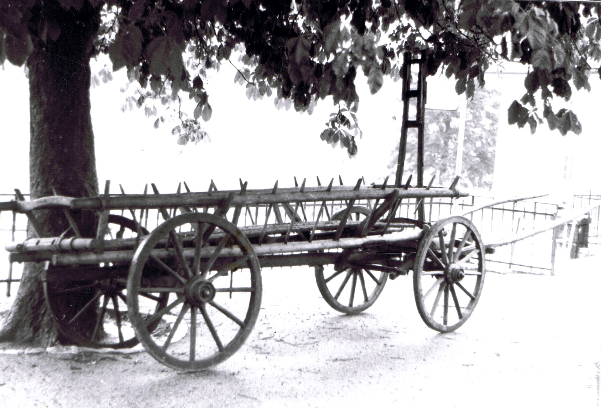 Ces chars à échelles en somme encombrants et que l'on démontait après les regains pour que désormais, en pièces détachées, ils puissent se réduire facilement au fond de la grange. De la place, on a toujours besoin, ne serait-ce que pour descendre le foin de la têche où il a été coupé pour être ensuite secoué et placé dans les crèches à destination du bétail.