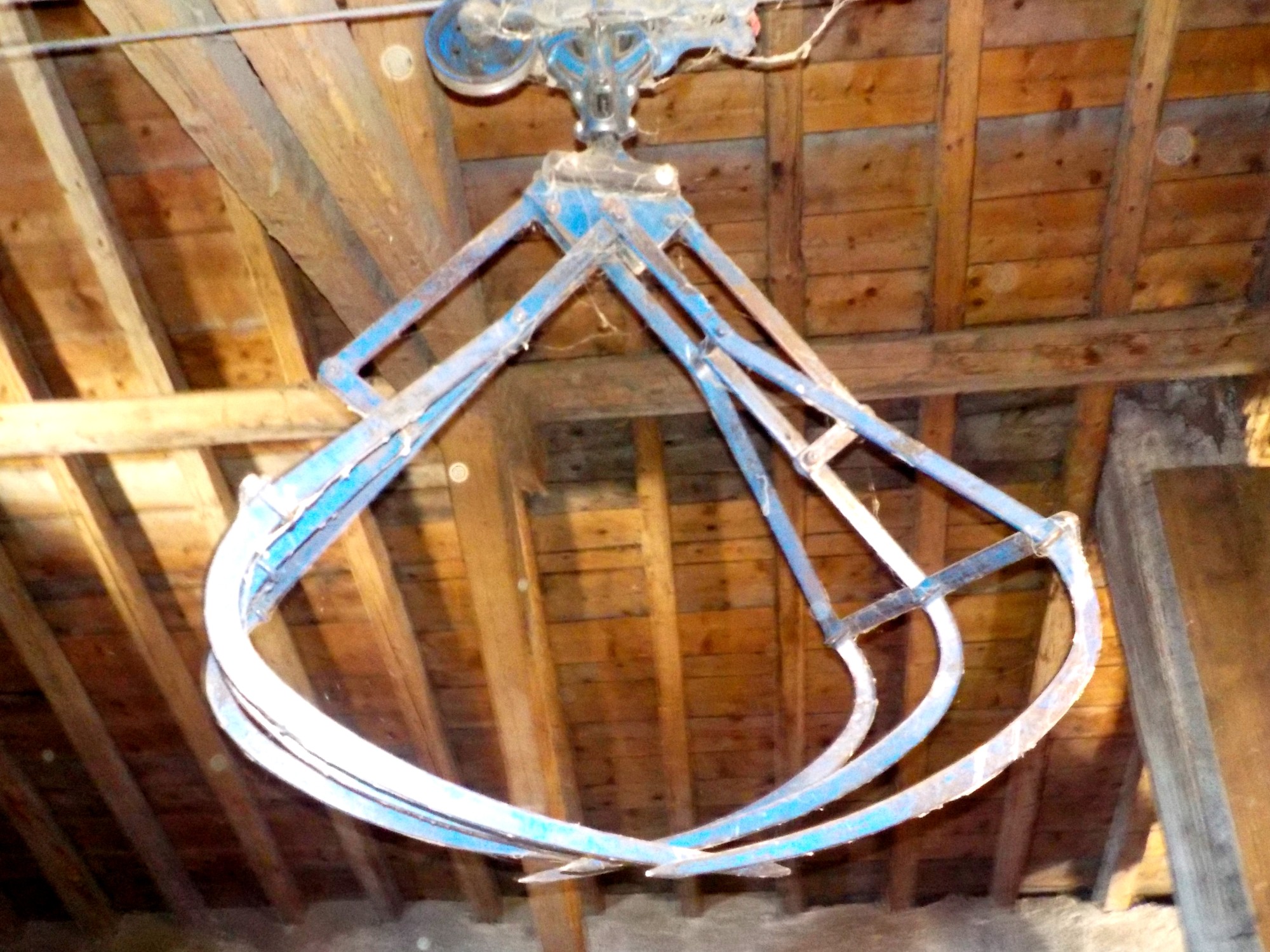 Il y eut donc presque toujours dans ces granges, sur ces solins, des systèmes divers pour monter le foin d'un char. Le monte-charge traditionnel, avec poulie fixée sous la poutre du faite de la grange et le treuil et les manivelles en bordure, les pinces, fixées au bout d'un câble lui-même courant jusqu'au treuil mécanique situé parfois à des distances considérables de l'endroit ou reposait le foin, souffleries en une période plus moderne... Bref, à chacun d'adapter le système qui n'était que rarement celui du voisin.