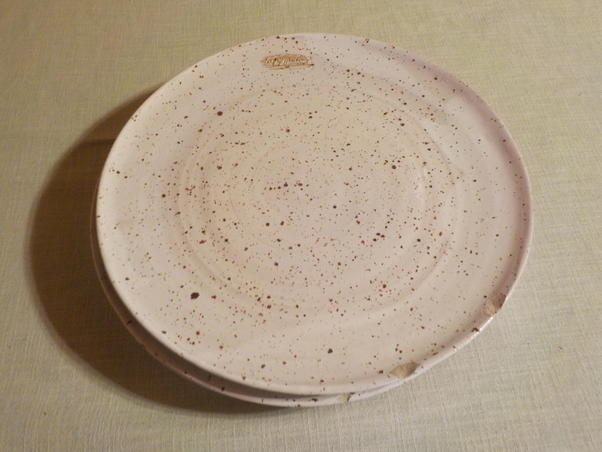 Belles assiettes en terre cuite émaillée, lourdes et ébréchées.