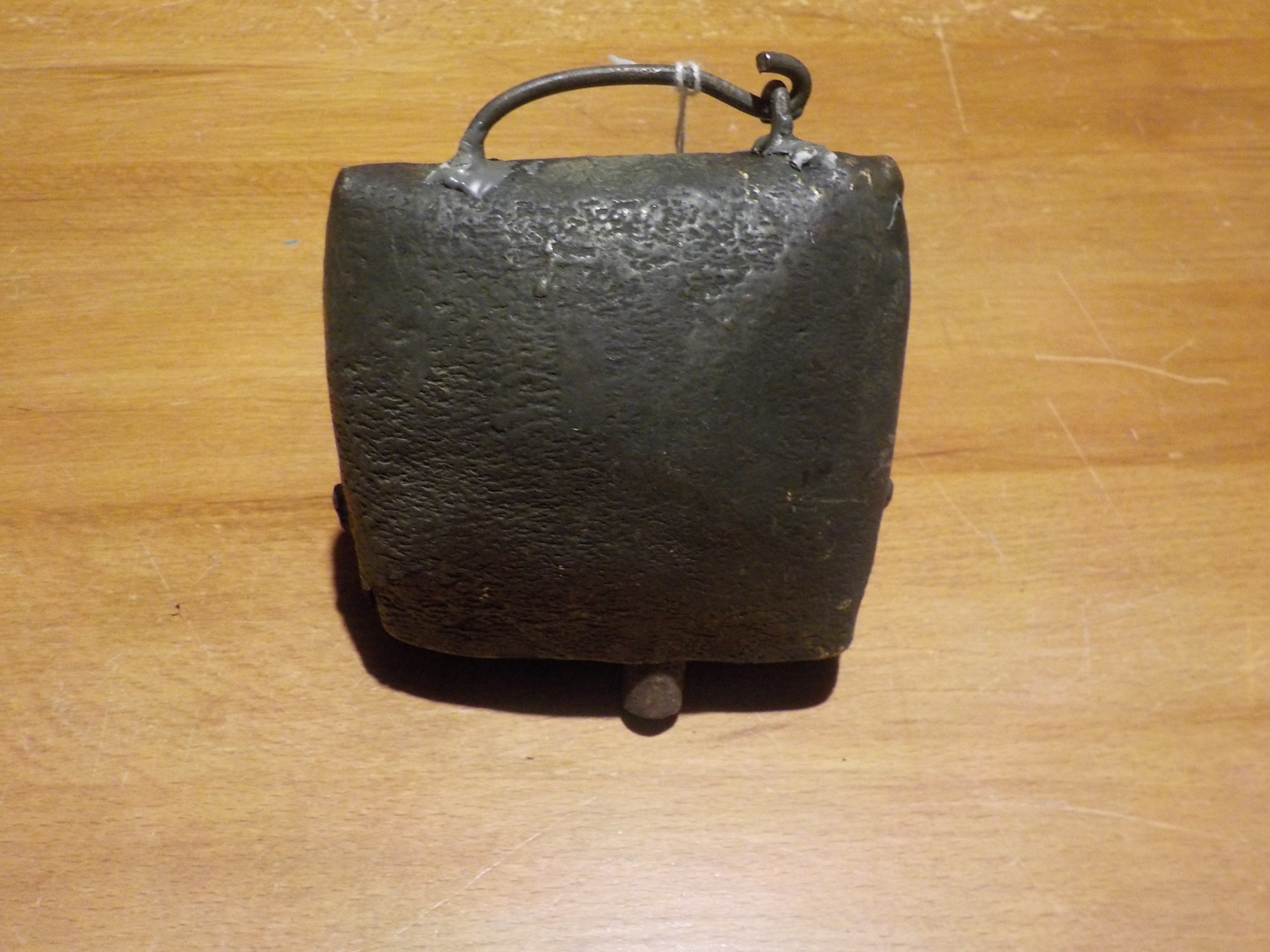 On aurait bien voulu qu'il nous montre un petit collier de rien du tout. Mais pour 6.-, que demander de plus que ce petit grelot. Il ne peut se comparer d'aucune manière avec les beaux toupins qu'on nous présente à la Bourse aux Sonnailles de Romainmôtier. Et pourtant il existe, il est là, il a battu au cou d'un petit veau ou d'une chèvre. Malgré son infinie modestie, il fait partie quand même de la grande famille des cloches. Il y a sa place. Il sera amené à poursuivre sa route dans les collections du Parimoine qui possède tout de même d'autres cloches de plus belle envergure.