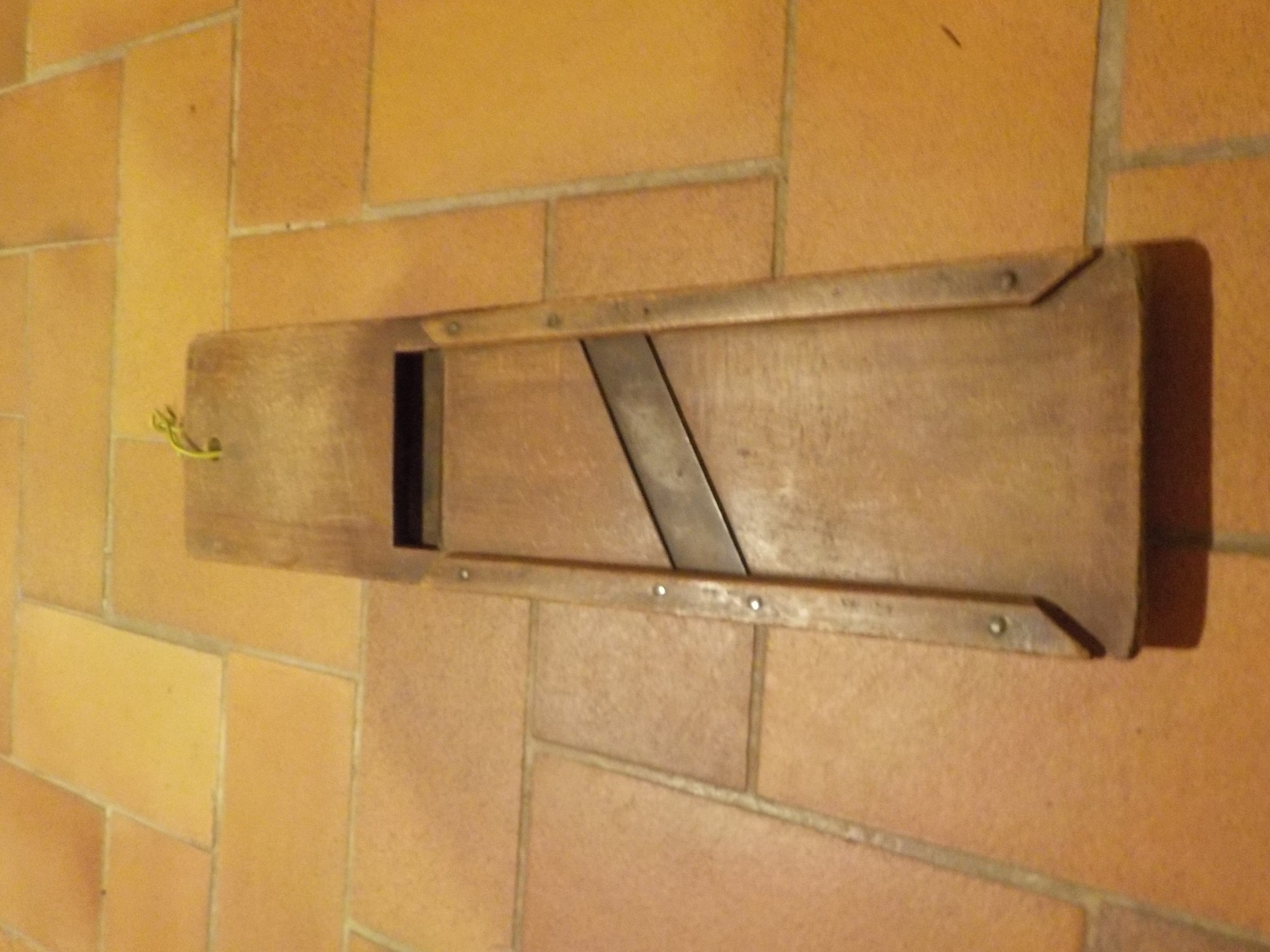 Râpe à légumes des cuisines anciennes. Servi de centaines voire des milliers de fois, avec la belle patine lustrée du bois. Objet absolument indispensable. Qui fait partie de votre univers, que vous prenez dans les mains sans plus pouvoir admirer sa belle prestance. Il a servi. Il a son histoire. Et puis, un jour, il échoue dans les collections du Patrimoine qui en prendra grand soin.